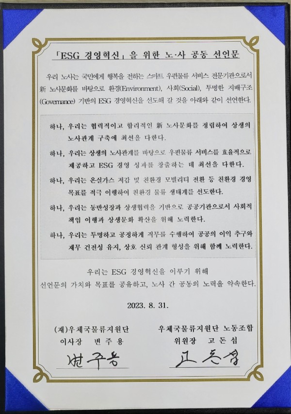 ESG 경영혁신을 위한 노사 공동 선언문